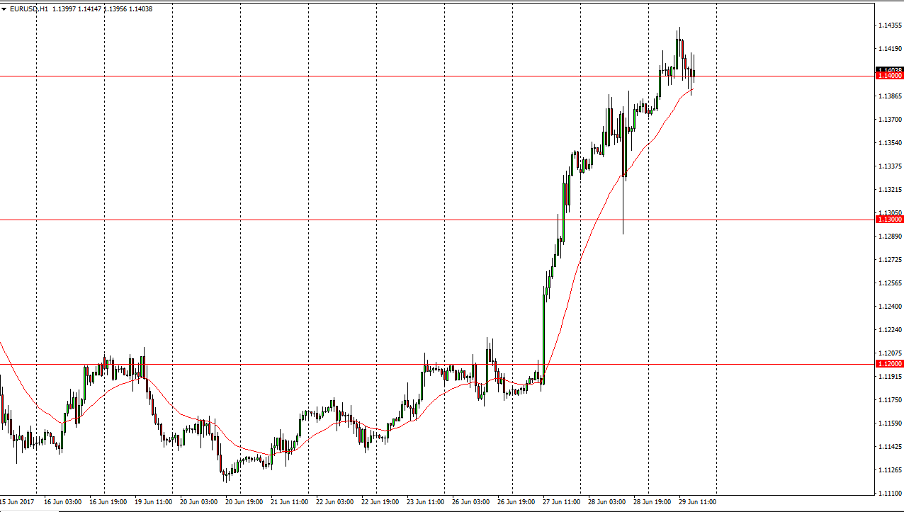 The EUR/USD pair rallied a bit during the day on Thursday, breaking above the 1.14 handle. The market looks content to grind sideways for the short-term, which makes quite a bit of sense considering how much we have rallied. I think that there is probably more downside risk and up in the short term, just because of the volatility that we have seen in the one-way bet that has been this trade for several days. I believe that the pullbacks will offer buying opportunities though, but one will probably have to be patient to see the gains.
