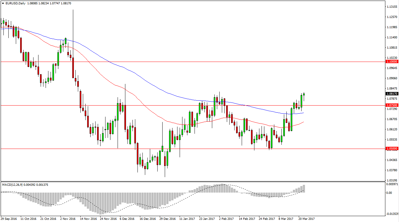 The EUR/USD pair fell initially during the day on Wednesday but found enough support just below the 1.08 level to turn things around and form a hammer. If