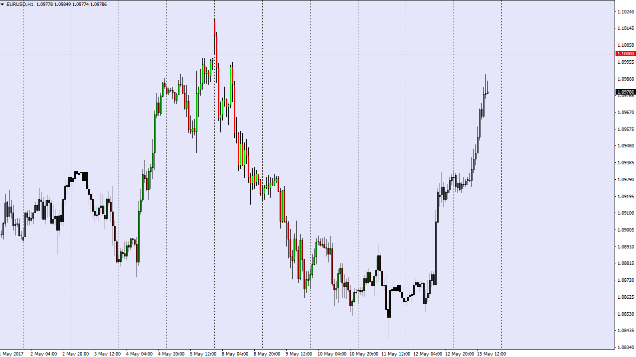 The EUR/USD pair had an explosive moved at the open on Monday, reaching towards the 1.0990 level. However, the 1.10 level above continues to offer significant resistance, and the fact that we a forming a shooting star on the hourly chart suggested that we got a little bit overbought. On the Stochastic Oscillator, we are in an overbought situation on the hourly chart, so it looks as if we are going to continue to go back and forth in the larger consolidation area. I think if we can break above the 1.10 level, the market could go higher, but I don’t have any interest in buying until we close above there on at least an hourly chart.