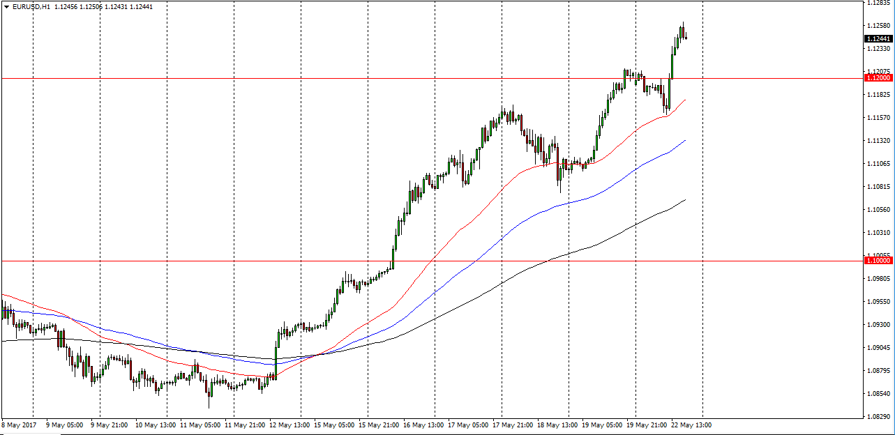 The EUR/USD pair initially fell on Monday, but found the 24-hour exponential moving average to be supportive enough to turn the market around, and send it back above the 1.12 level. The market then rose to the 1.1260 handle, in response to Angela Merkel suggesting that the EUR was far too cheap, and that it was the fault of the European Central Bank, suggesting that perhaps the Germans would press for a higher currency exchange rate. Because of this, currency traders got involved and started buying. Alternately though, we were already in an uptrend, so it wasn’t a real stretch to see this market go higher. Because of this, I believe that buying dips will continue to be a nice way to play this market although I recognize that the longer-term trading range of this market limits gains to about the 1.15 handle above.