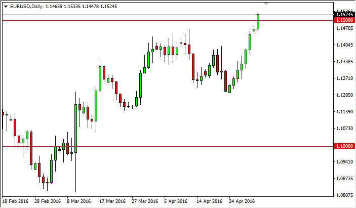 The EUR/USD pair broke higher during the course of the day, clearing the 1.15 level. By doing so, this market looks like it’s ready to continue going