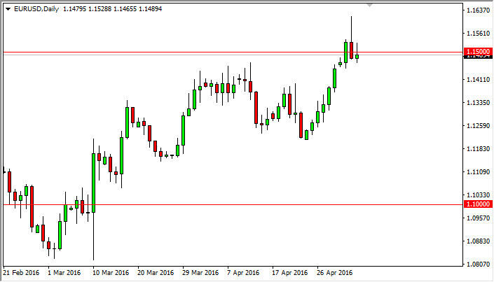 The Euro tried to rally during the day on Wednesday, but struggled above the 1.15 level again. By doing so, we ended up forming a bit of a shooting star