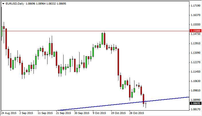 The uptrend line of course is very important, and it basically determines the longer-term move in this particular market, as it features a couple of central banks that are looking for ways to kill off their own currency’s value. On top of that, we have recently had statements from Janet Yellen that the United States may have to wait to raise interest rates longer than anticipated, and possibly even go to negative interest-rate. This is shortly after the European Central Bank suggested that more stimulus could be on the way. In other words, we are still very much in stocks in the currency war that has made currency trading so volatile recently.