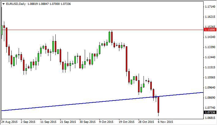 EUR/USD pair broke down during the course of the session on Friday, breaking below the uptrend line that has been keeping the market afloat for some time
