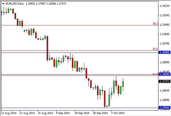 The EUR/USD pair initially fell during the course of the day on Monday, and then turned back around to attempt to break out above the 1.28 handle. That level of course is very resistive though, and we think that the resistance goes all the way to the 1.30 handle. With that, we are not willing to start buying, and quite frankly this makes us look for resistive candles in order to start shorting again. However, if we get above the 1.30 handle, we would feel that the trend is broken and we go higher.