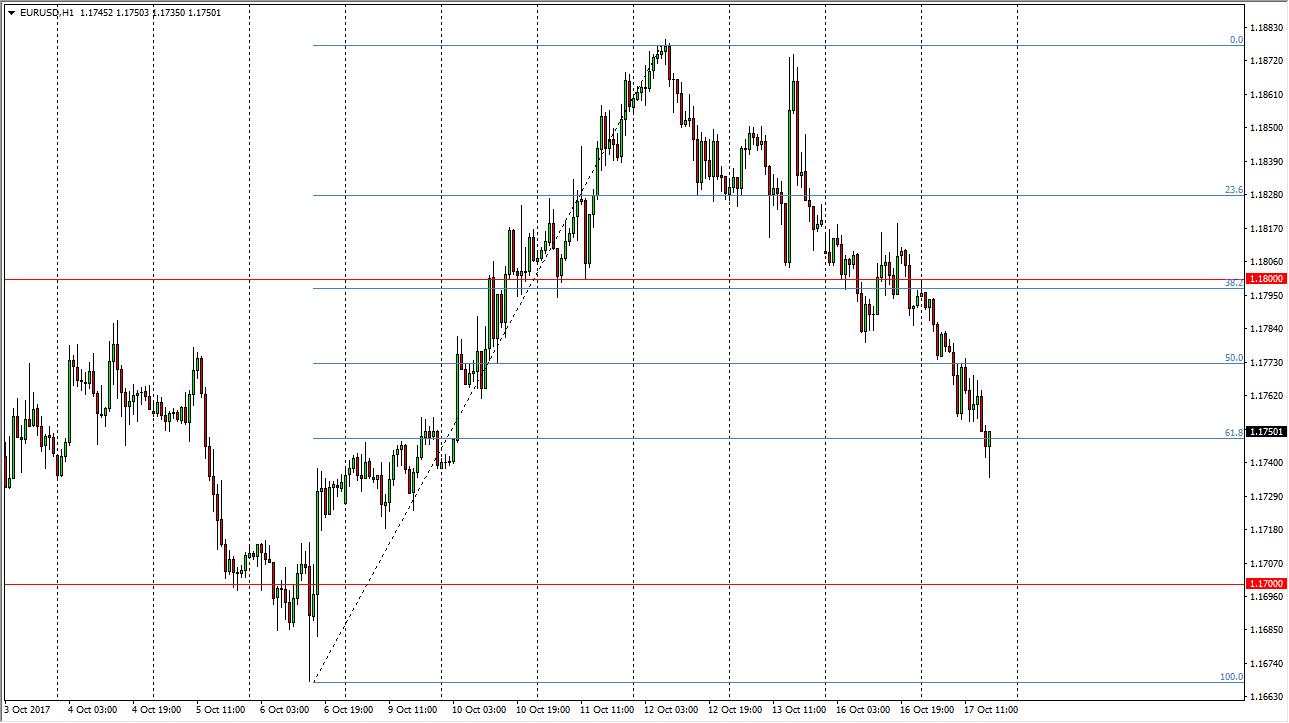 The EUR/USD pair fell rather significantly during the day on Tuesday, reaching down to the 1.1750 level underneath. This is an area where we have seen