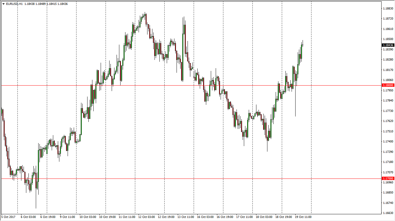 The EUR/USD pair went sideways initially during the day on Thursday, but then did dip at one point. It appears that traders like the idea of Spain taking control of Catalonia, as they have bought the EUR Hanover fist since then. The 1.18 level should offer support, and I think it’s only a matter of time before the markets go to the 1.19 handle. Ultimately, this is a market that has been trending higher for some time, and it makes sense that we should continue to find buyers. I don’t have any interest in shorting this market, as I think that the psychologically important 11.20 level is the target, and it’s only a matter of time before we go looking towards that level. This is an area that has been resistive in the past, but should give way eventually. I think we been trying to build up enough momentum to take that level out, but it’s obviously going to take something special to have that happen.