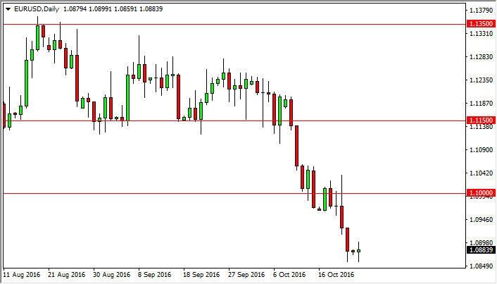 The EUR/USD pair initially fell during the course of the day on Monday, but found enough support at the lows again to bounce. Ultimately, looks like we could bounce a little further but I’m waiting to see whether or not we get an exhaustive candle above that I can start selling. Alternately, and exhaustive candle somewhere closer to the 1.10 level should offer perceived “value” in the US dollar going forward. I have no interest whatsoever in buying the Euro at the moment, as I believe we are eventually going to reach down to the 1.05 level below.