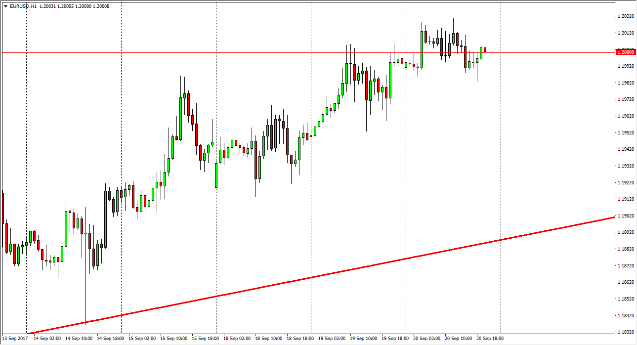 The EUR/USD pair has gone sideways around the 1.20 level during the session on Wednesday as we continue to look bullish overall. There is a lot of noise