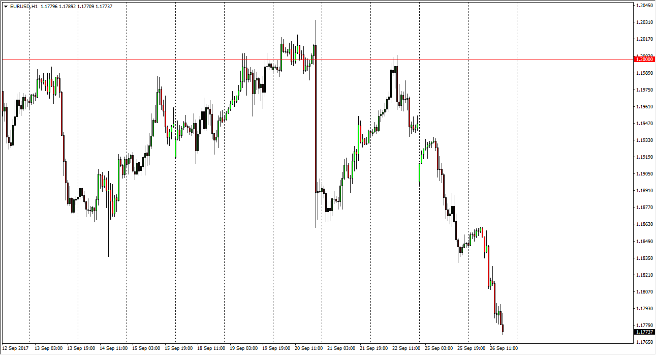 The EUR/USD pair fell again on Tuesday, as we have broken below the 1.18 level. This is a market that seems to be rather negative, after the German elections showed just how divided the European Union is. Because of this, I think that we continue to see selling of rallies, and that we will probably go looking for support underneath, first of the 1.1750 level, and then eventually the 1.17 level where think there is much more substantial support. If we were to break down below there, then I think we go testing the 1.15 level under that, which should be even more supportive. Certainly, the attitude of the market has changed overall, and I believe that we will continue to see volatility. The US dollar could continue to strengthen, if there is uncertainty. There are pundits out there who are suggesting that the US Dollar Index has bottomed, which should put bearish pressure on this market. However, based upon the recent breakout above the 1.15 level, the technical signal is that we should go to the 1.25 handle.