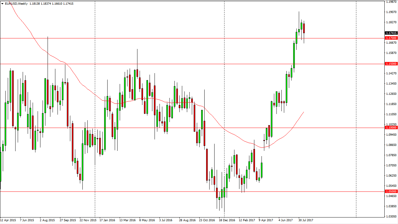 The EUR/USD pair fell during a large portion of the week, but ended up rallying enough to form a supportive looking hammer which mirrors the hammer from