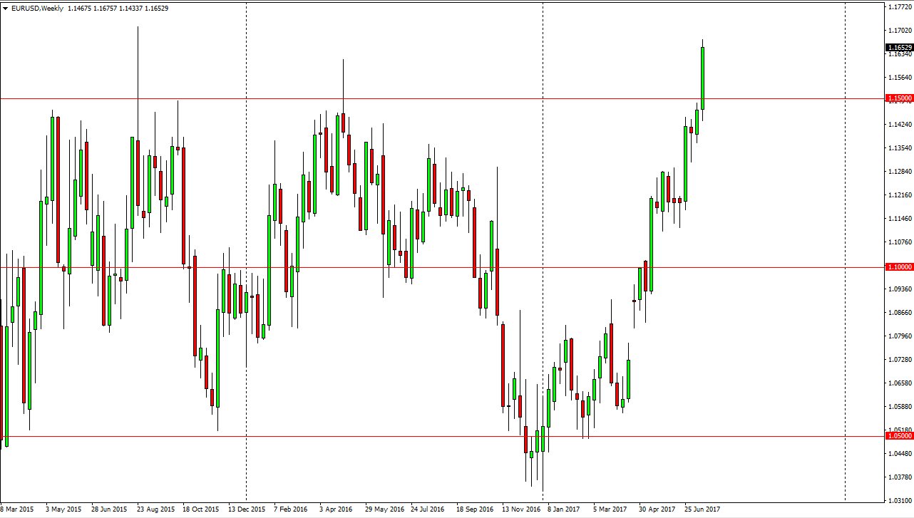The EUR/USD pair initially fell during the week but sliced through the all-important 1.15 handle. This is a very bullish sign, and it suggests that we are