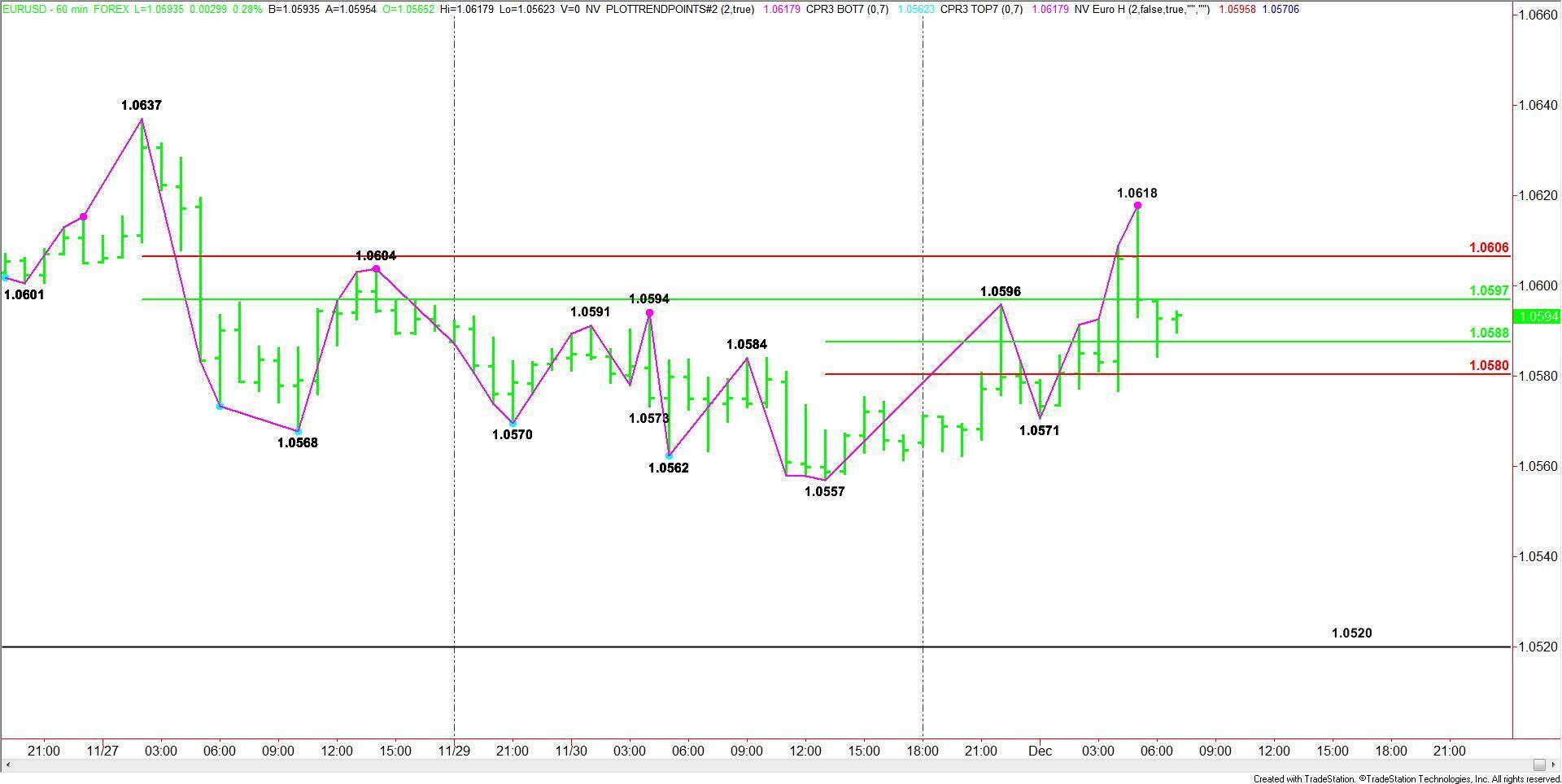 Based on the current price at 1.0591, the key angle to watch the rest of the session drops in at 1.0602. Trader reaction to this angle will determine the direction of the EUR/USD the rest of the day.