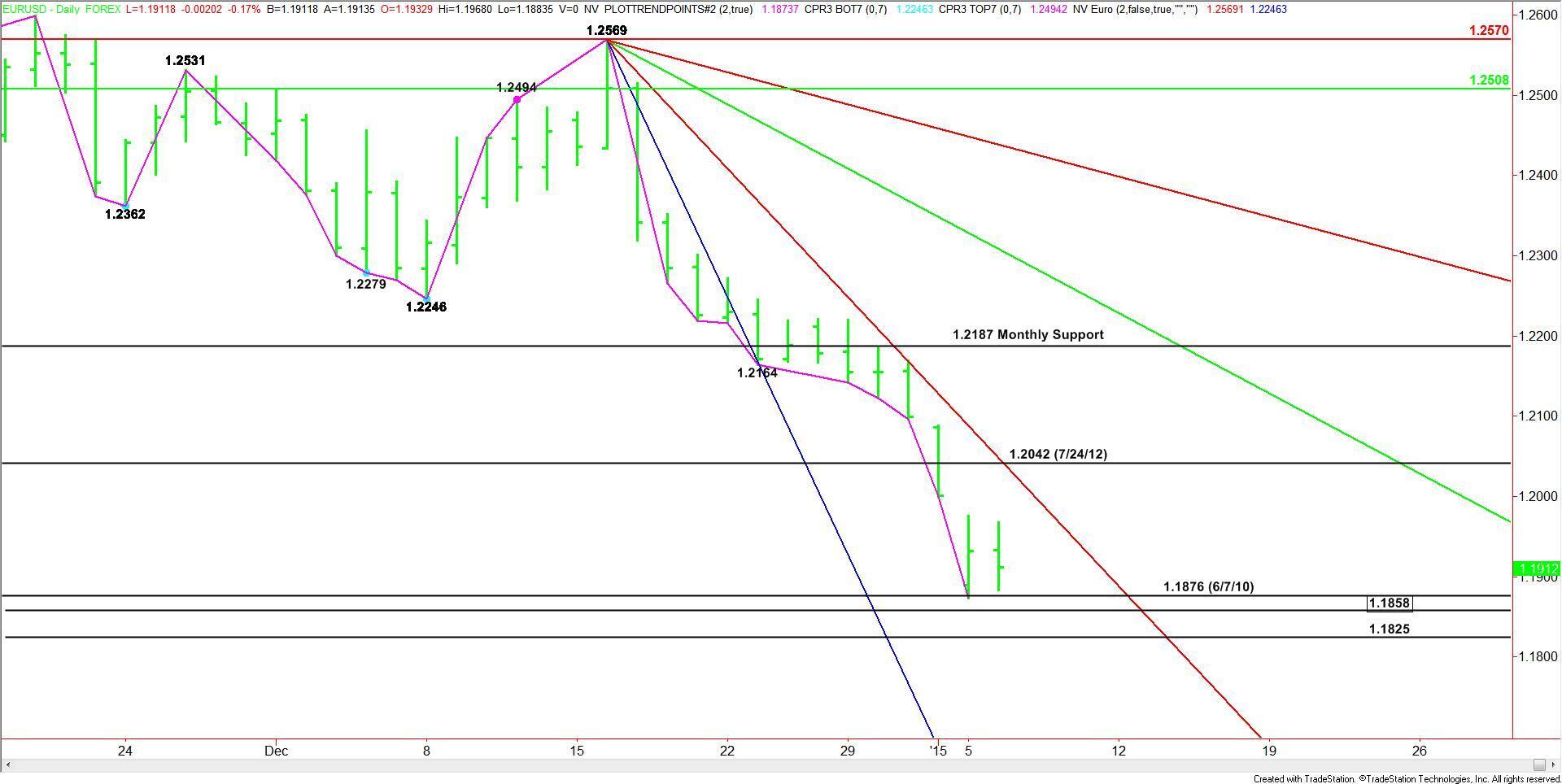 The new short-term range is 1.1968 to 1.1883. The retracement zone formed by this range is 1.1926 to 1.1936. Since the trend is down, sellers are likely to come in if this zone is tested. Trader reaction to this zone will likely set the tone into the close.
