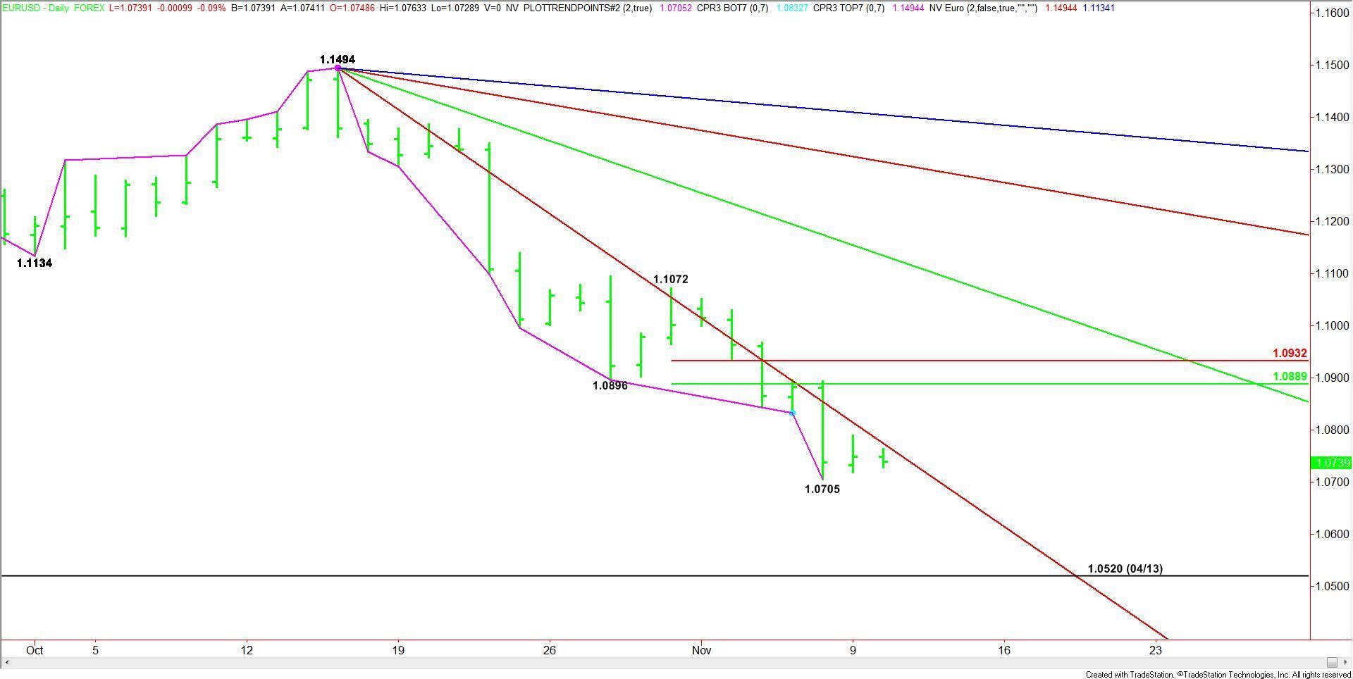 Given the short-term range of 1.1072 to 1.0705, the primary upside target is a retracement zone at 1.0889 to 1.0932.