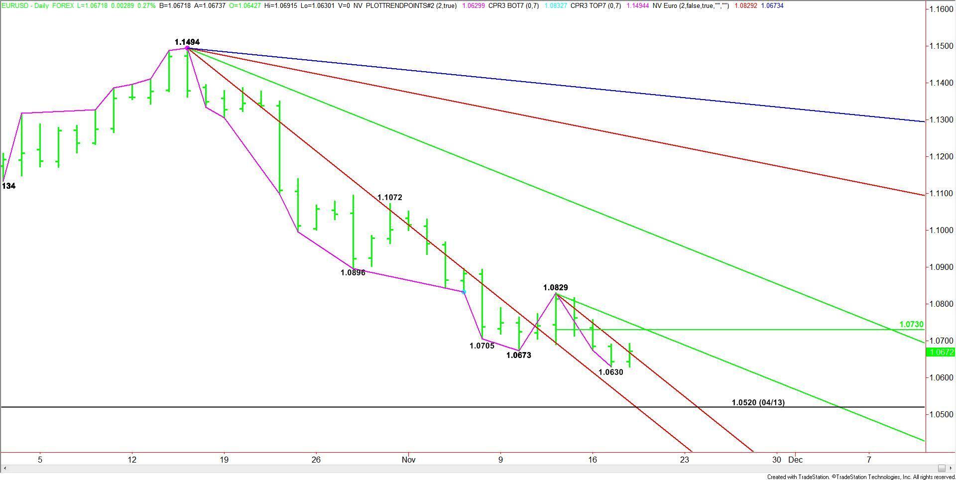 The direction of the market today is likely to be determined by trader reaction to the steep downtrending angle at 1.0659.