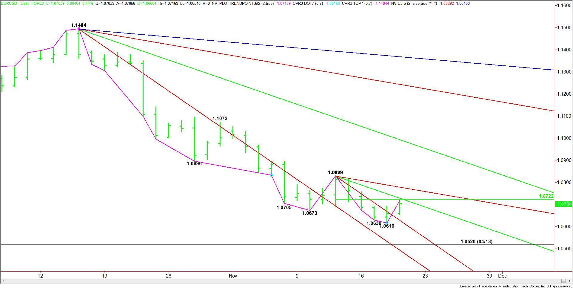 Daily EUR/USD Technical Analysis The EUR/USD is trading higher at the mid-session. This rally represents a follow-through move fueled by yesterday’s