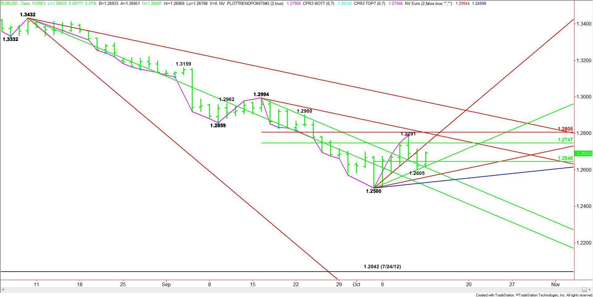 Holding the pivot at 1.2646 could trigger a rally into an uptrending angle at 1.2740 and another 50% level at 1.2747.