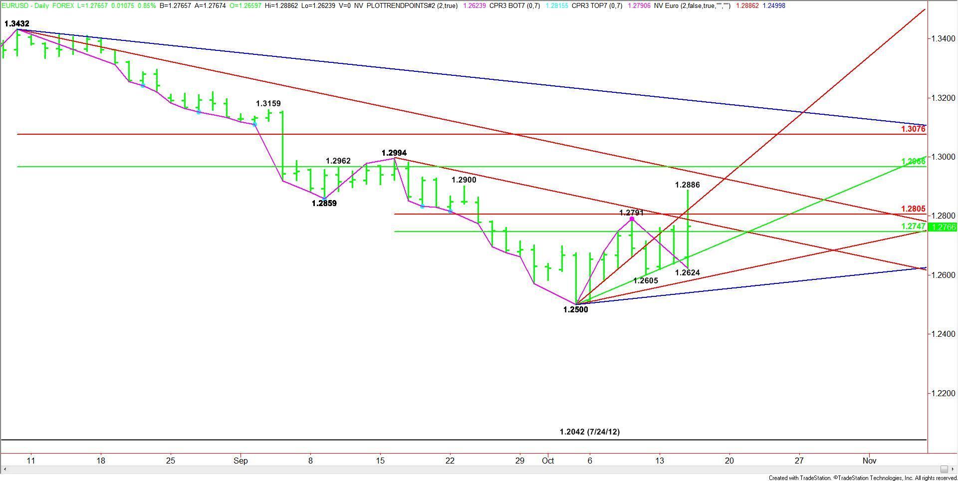 The new short-term range is 1.2637 to 1.2886. The retracement zone of this range at 1.2761 to 1.2732 is currently being tested. Since the trend is up, buyers may come in to support the market inside this zone.