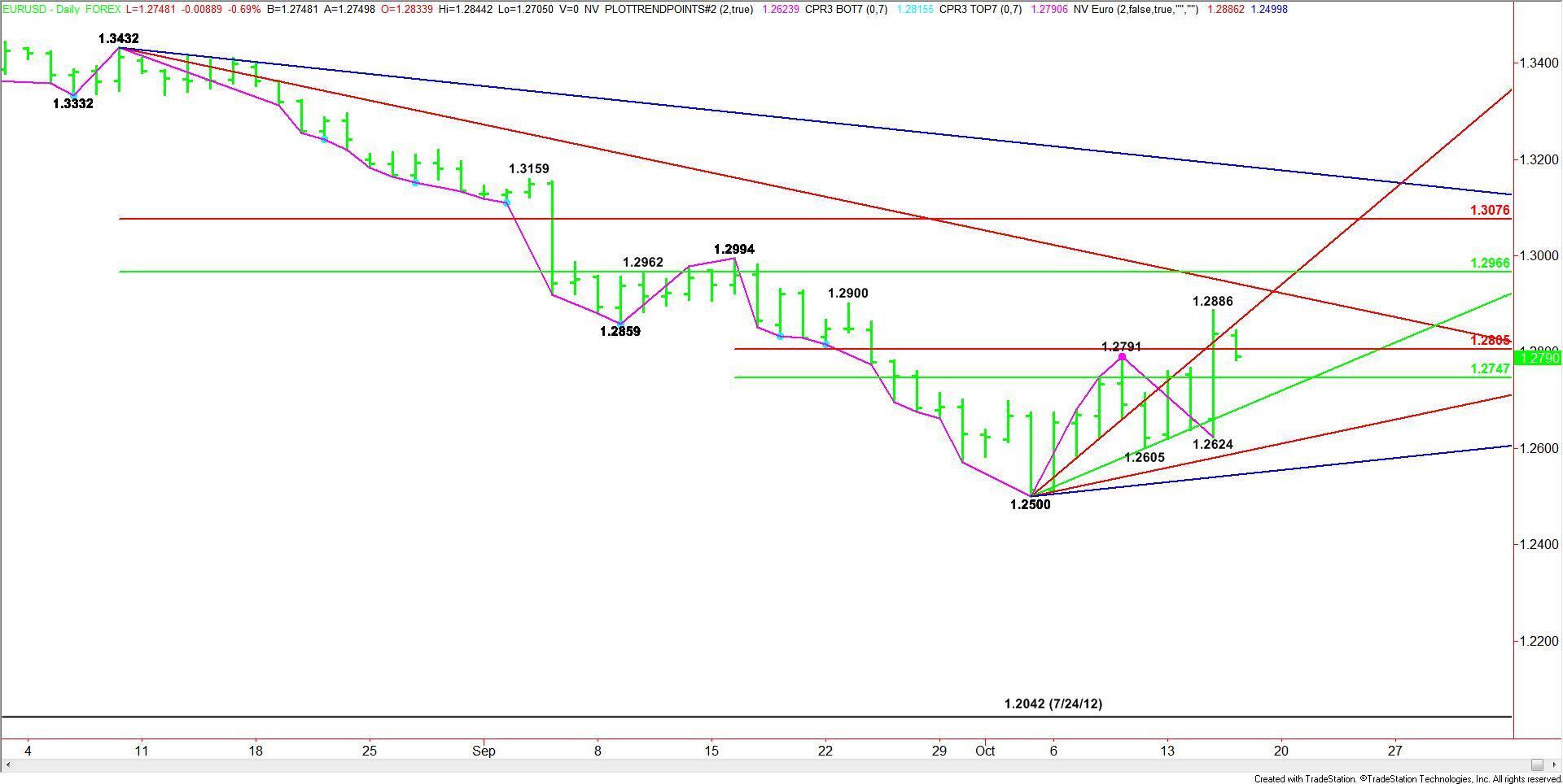 Daily EUR/USD Technical Analysis The main trend turned up on Wednesday when the EUR/USD took out the swing top at 1.2791. The new main bottom is 1.2624. A