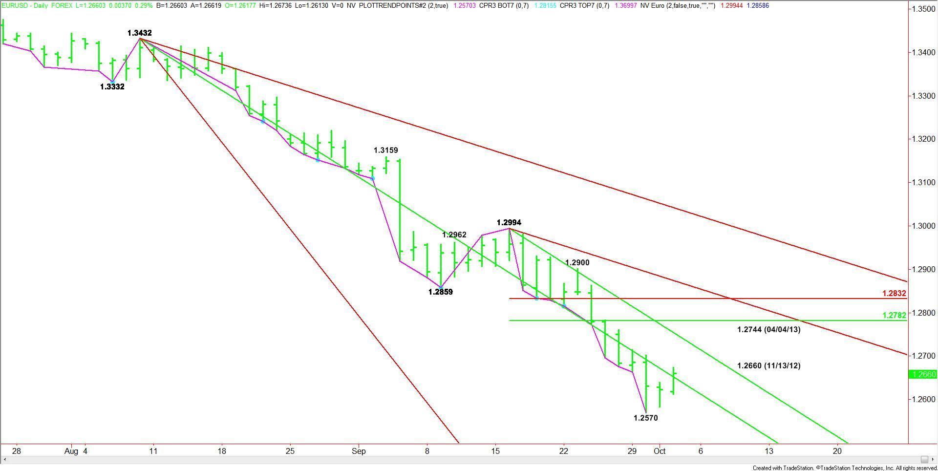 A new short-term range has formed between 1.2570 and 1.2674. Its retracement zone at 1.2622 to 1.2610 is providing support today. Trader reaction to this zone will set the tone for the day. The swing bottom at 1.2613 also falls inside this zone.