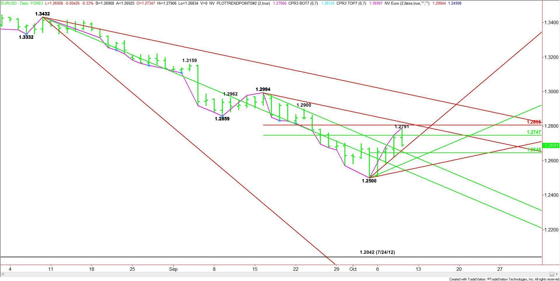 The short-term range is 1.2500 to 1.2791. Its pivot at 1.2646 is the next likely downside target. This price is controlling the short-term direction of the market. A successful test of this level will be a sign that buyers are defending the Euro. Taking it out with conviction will indicate that sellers have regained control.