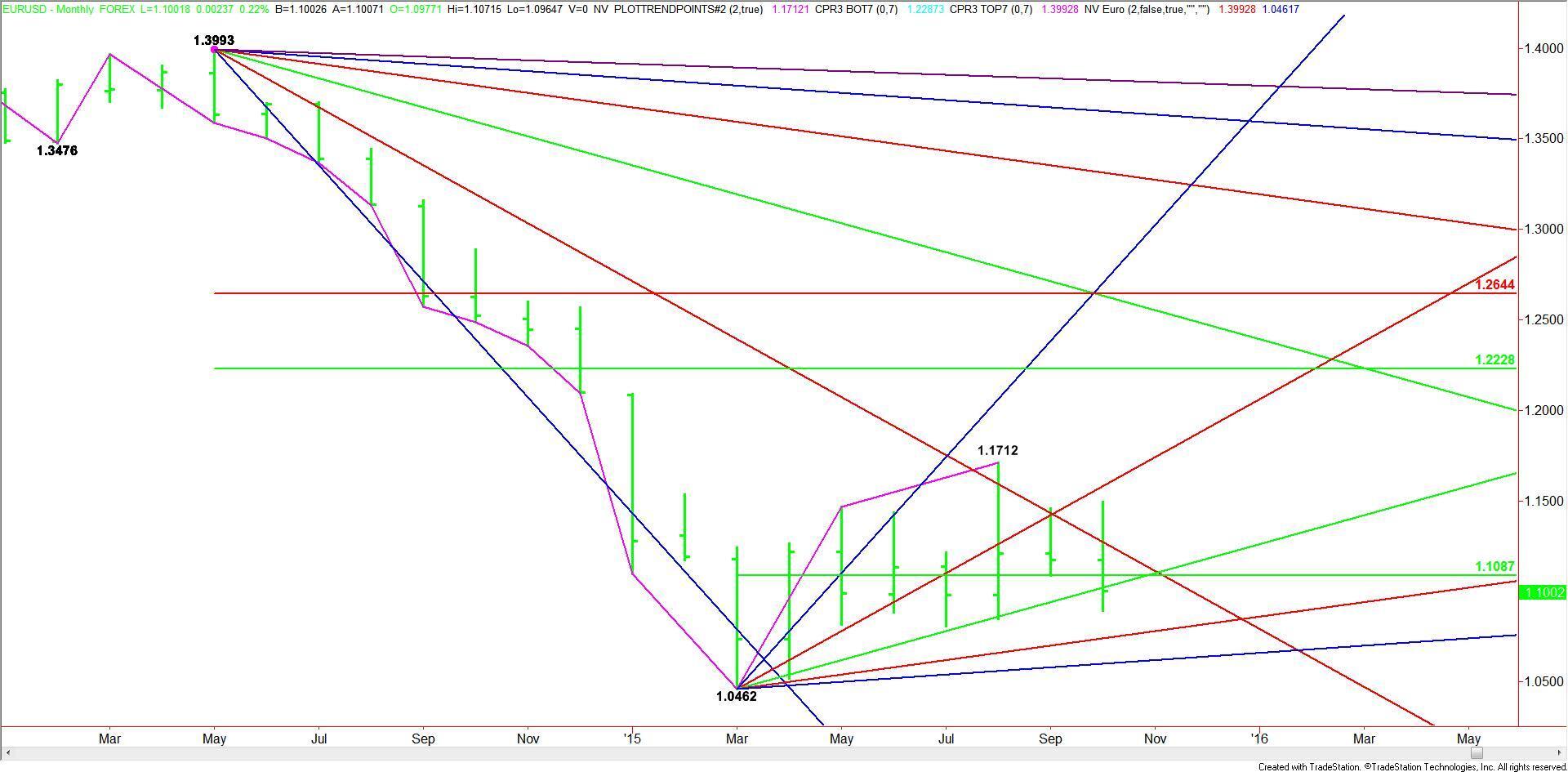 The short-term range is 1.0462 to 1.1712. Its 50% level or pivot price is 1.1087. This level is controlling the short-term direction of the market.
