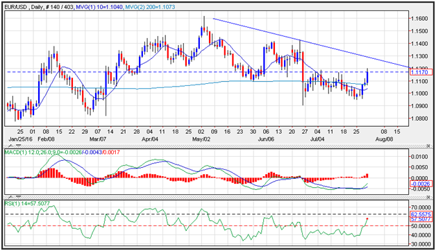 The EUR/USD surged following the U.S. Q2 GDP miss which came in nearly half of expectations. The currency pair ripped higher and is poised to test