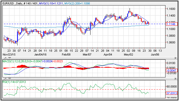 The EUR/USD edged lower ahead of the Fed Chair’s speech and question and answer session at Harvard. Most of the topics veered away from monetary policy but she did say that a rate hike would likely be appropriate in the coming months. Yellen speeks again on Jun 6, which will likely be more focused on interest rate policy. Traders seemed to ignore the softer than expected Michigan sentiment index.