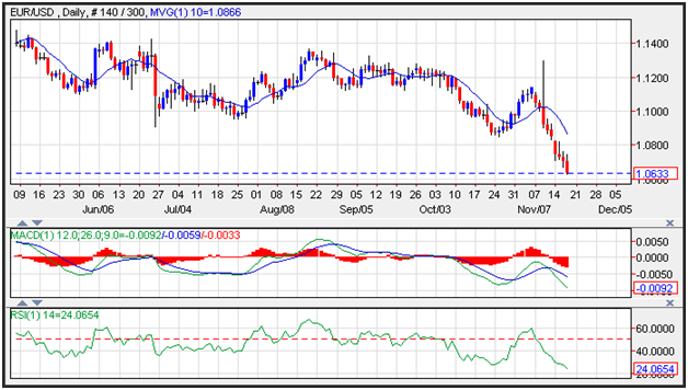 The EUR/USD continued its trend lower and is poised to test a 1-year low near 1.0506. Resistance is seen near former support now resistance at 1.0850.