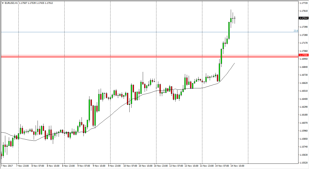 The EUR/USD pair broke out during the trading session on Tuesday, slicing through the 1.17 level. This is a very bullish sign as that was the neckline of