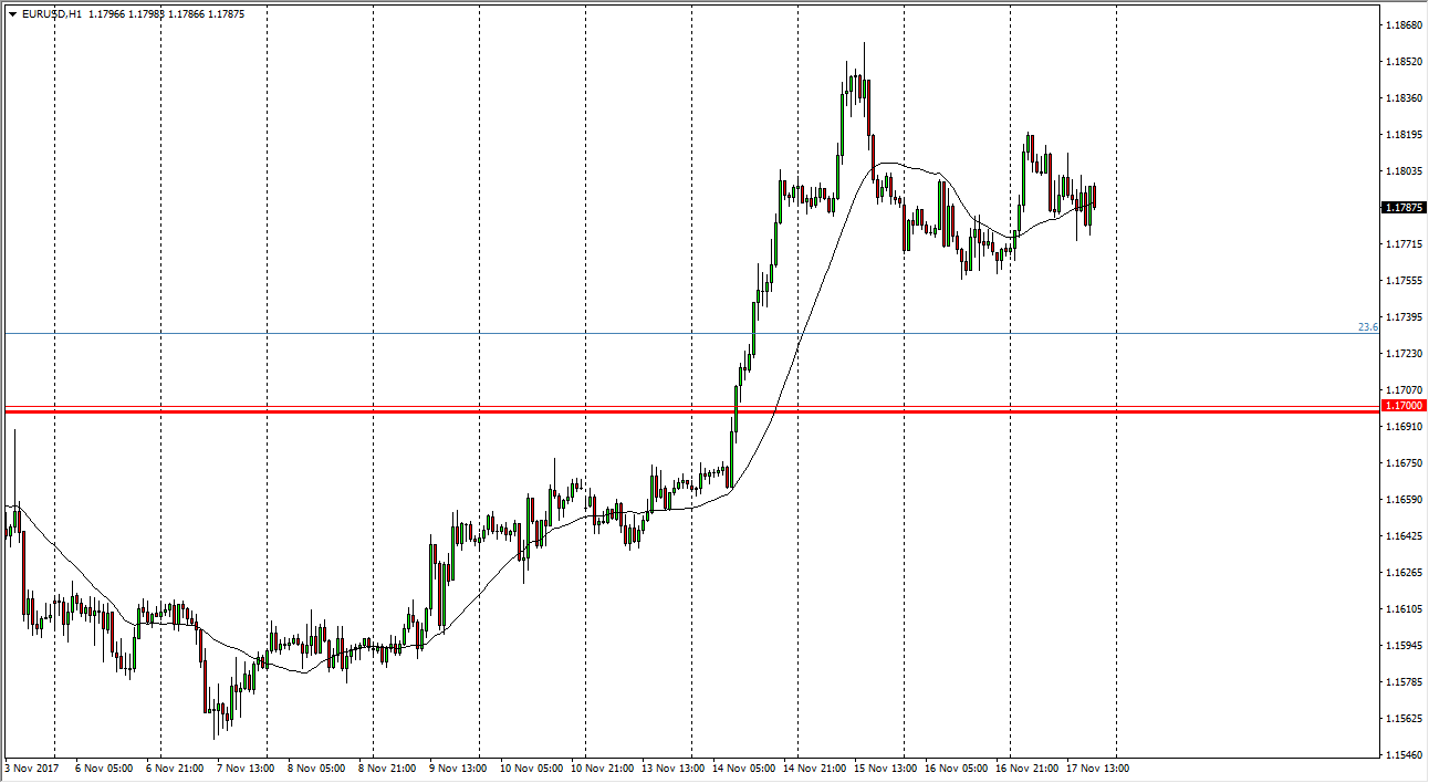 The EUR/USD pair has been choppy during the trading session on Friday, rallying a bit, breaking above the 1.18 level. However, we roll over from there and it looks as if were going to settle on an almost unchanged day. Breaking above the 1.17 level was rather significant, and I think that should be paid attention to. This was the previous neckline from the head and shoulders pattern on the daily chart that had been broken to the downside, and the fact that we turned around and broke above it is a very powerful signal for the strength of the EUR. I believe that one of the biggest drivers of this move has been the lack of a tax bill coming out of the U.S. Congress, and if they keep dragging their feet, it’s likely that we will continue to see buyers jump into this market place. However, keep in mind that the ECB is looking to extend quantitative easing, so therefore although tax bills continue to play the US dollar, there is still a little bit of heaviness to the EUR.