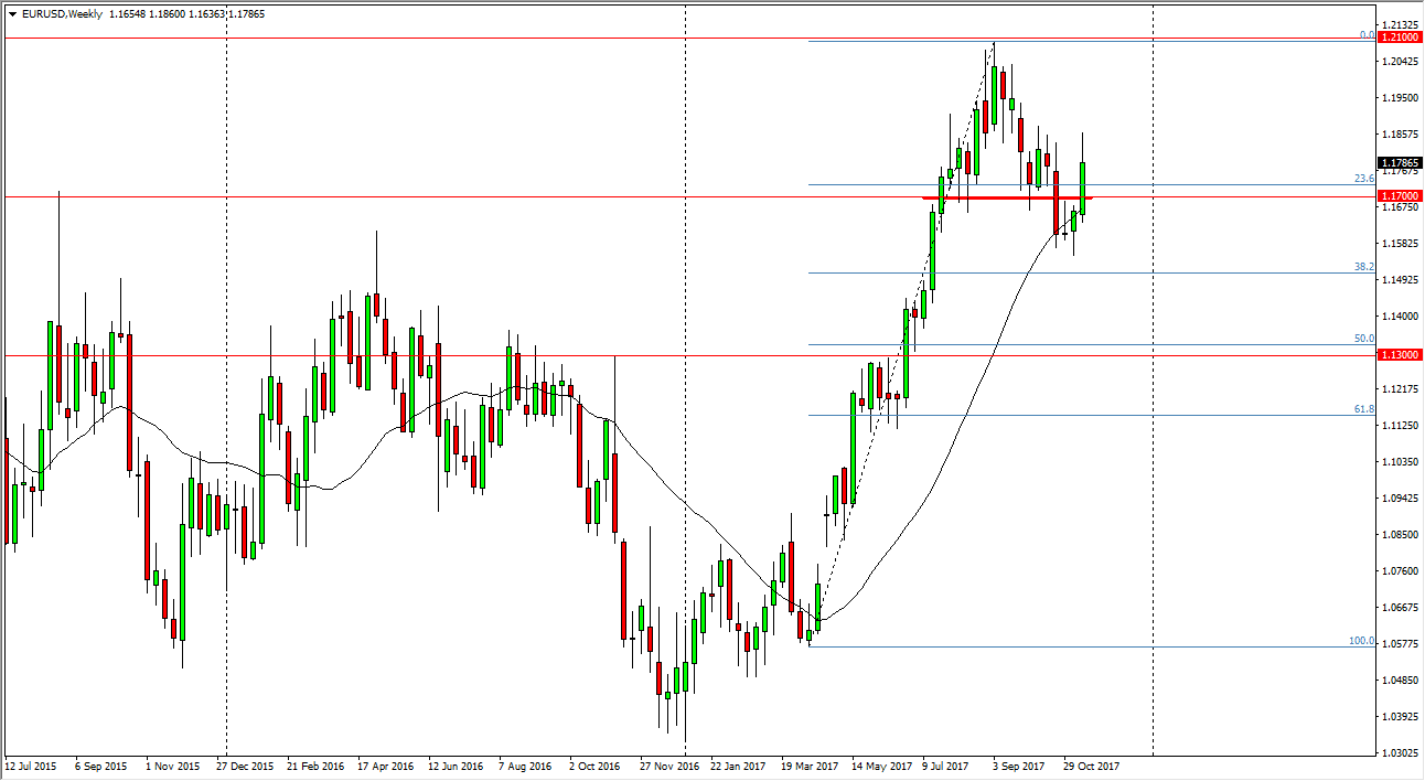 The EUR/USD pair rallied significantly during the week, slicing through the 1.17 level, something that is very impressive, as the 1.17 level was the
