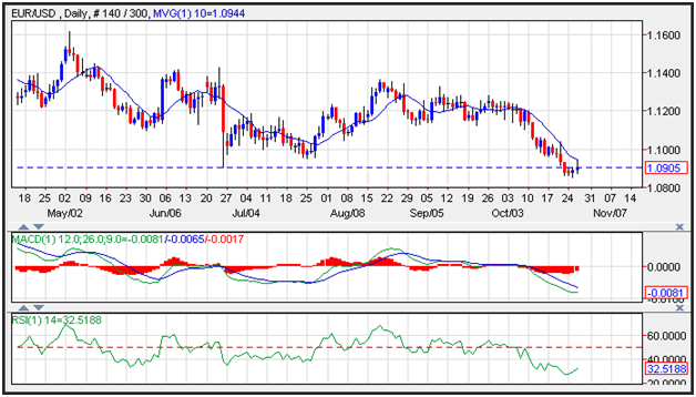 The EUR/USD moved higher but was unable to break through resistance near the 10-day moving average at 1.0944. Stronger U.S yields continue to generate