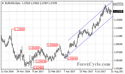 EURUSD stays in a bullish price channel on its daily chart and remains in the uptrend from 1.0569. As long as the price is in the channel, the pullback from 1.1909 could be treated as consolidation of the uptrend.