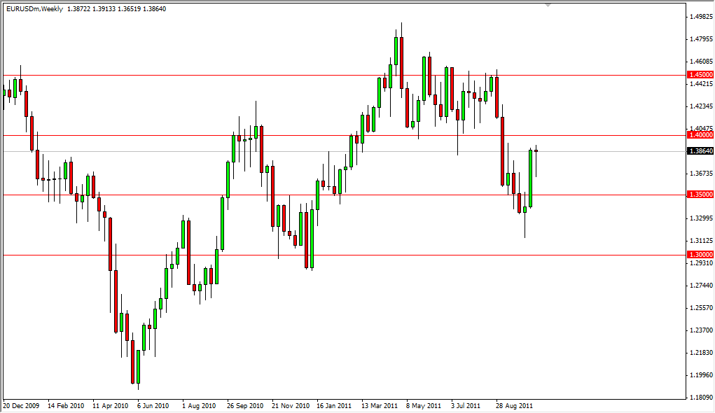 EUR/USD rose again this past week as traders continue to anticipate the EU coming to some kind of solution in the debt crisis. The pair looks strong at this point, but the 1.40 level should present serious resistance in this pair coming up. The meetings over the weekend could be another catalyst for a big move, but until then it is hard to tell where we go. The path of least resistance is probably down, and a breaking of the bottom of the candle for the week would have it being a “hanging man”, which is very bearish. The breaking of the 1.40 mark must be accompanied by a daily close, and then we would consider buying. Until then, we have to sit still.