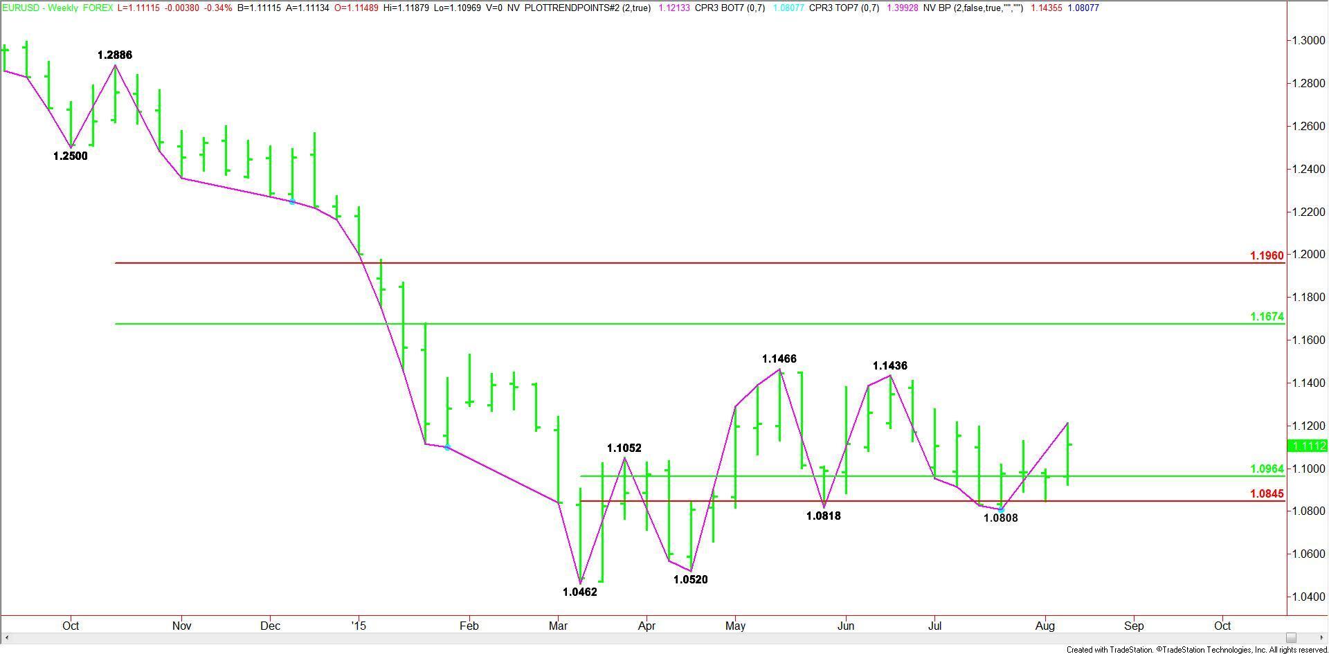 The EUR/USD posted a strong gain last week, fueled by oversold technical factors and an intervention by China after the People’s Bank of China devalued the Yuan three times last week. Also contributing to the weakness were comments from Federal Reserve vice chairman Stanley Fischer who said early last week that low inflation may prevent the Fed from raising interest rates in September.