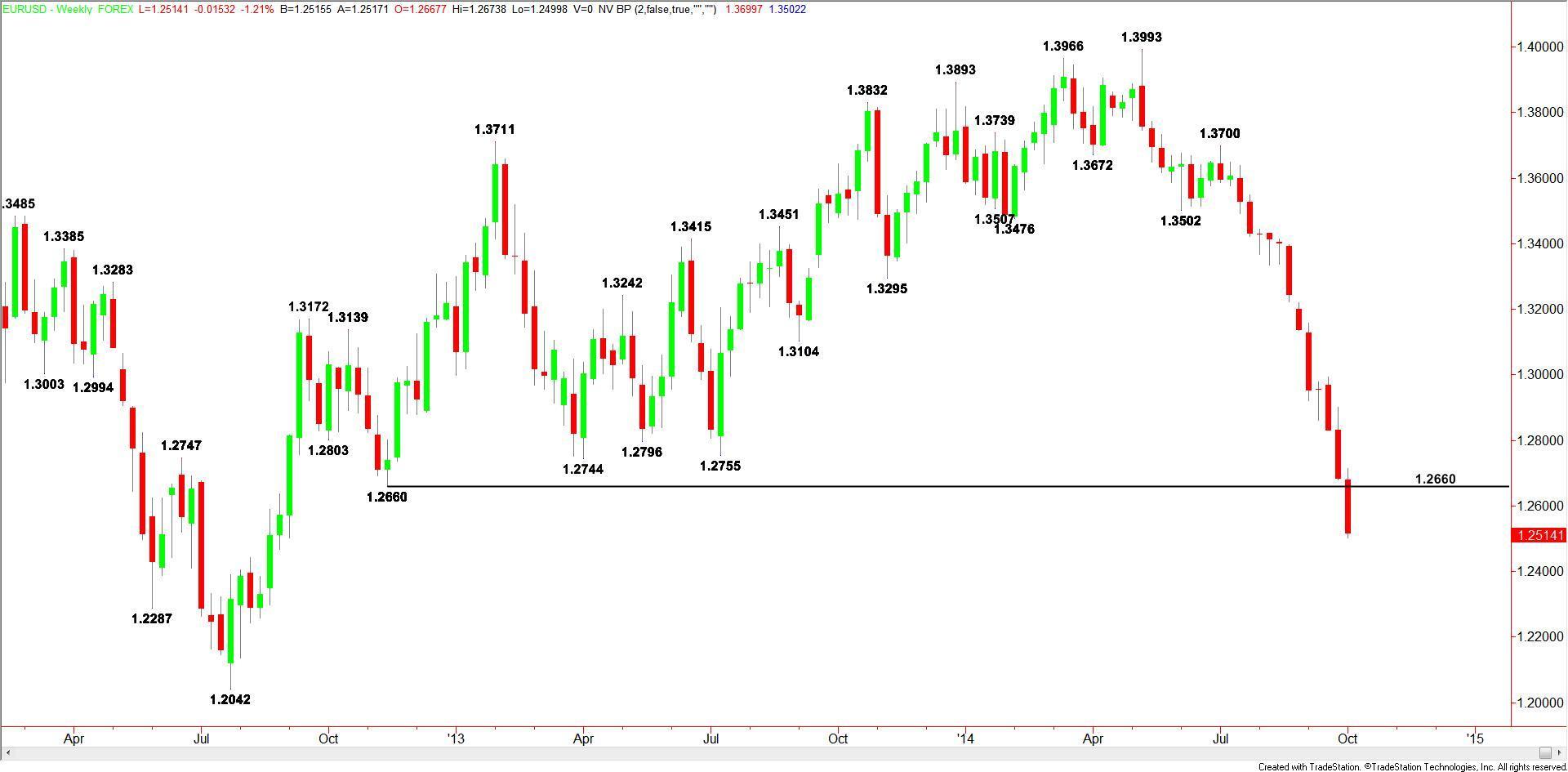 The EUR/USD continued its slide last week, reaching its lowest level since August 2012. Although technically the Forex pair is oversold and ripe for a short-covering rally, this is likely to be short-lived because the longer-term fundamentals are overwhelmingly bearish. The major players will likely be waiting to re-short on any meaningful rally.