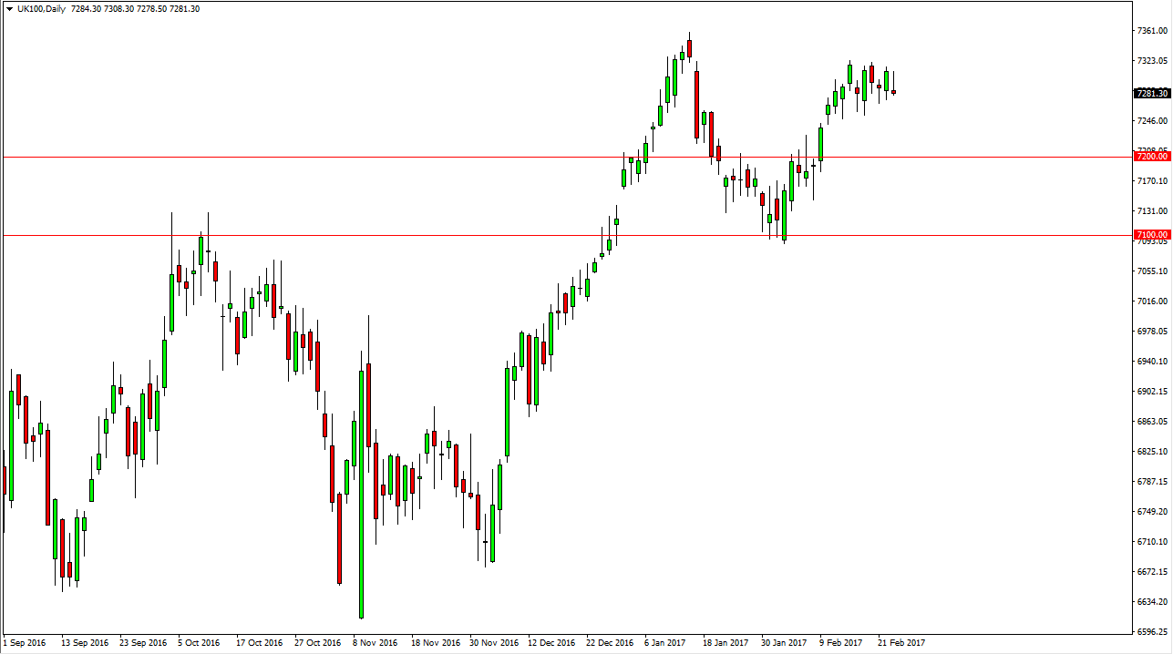 The FTSE 100 initially tried to rally during the Thursday session, but turned around to form a negative candle. Ultimately, I believe that any pullback from here should have plenty of support, and I think that the 7200-level underneath should be the “floor” in this market, and thus I think it’s only a matter of time before the buyers get involved. Ultimately, I believe that we are going to see a fresh, new high. I have no interest in shorting, I believe that the FTSE 100 will continue to rise right along with the rest of the stock markets around the world.