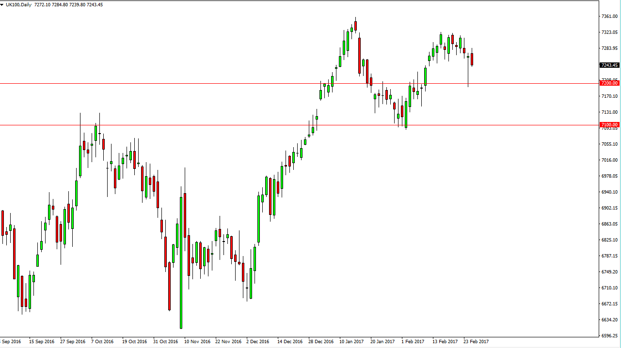 The FTSE 100 fell a bit during the session on Monday, as we continue to grind sideways overall. I still think that there’s a significant amount of support at the 7200 level however, so I’m willing to buy this market on the first signs of a bounce. At that point, I would anticipate that the market should then reach towards the 7325 handle, and then eventually the highs. I have no interest in selling, I believe there is a significant amount of support all the way down to at least the 7100 level.