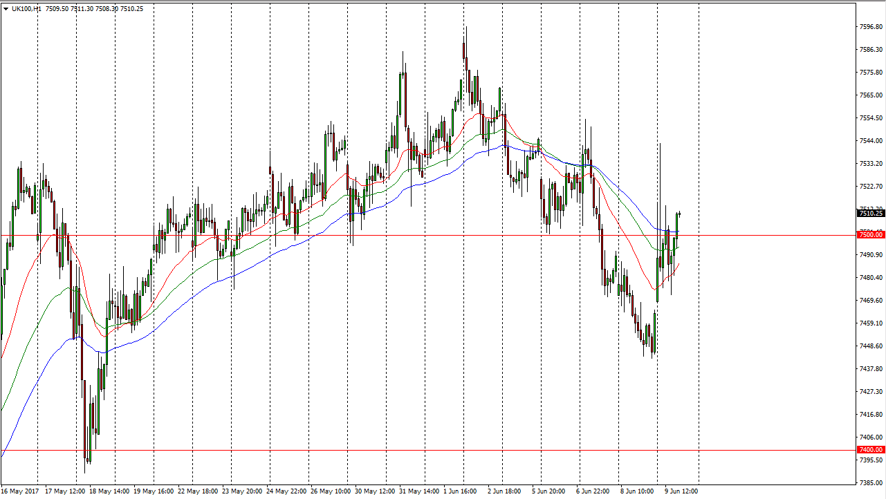 The FTSE 100 exploded to the upside during the session on Friday, as the British pound fell apart. This of course is good for the FTSE 100 which is heavily influenced by exports. The fact that we broke above the 7500 level tells me that the market is ready to go higher, although needless to say have been very volatile after the surprise election results. In the long-term, I believe the cooler heads have prevailed and we will continue to see buyers jump in. Given enough time, I believe that we will target the 7600 level and that short-term pullbacks continue to offer nice buying opportunities in a market that has been very bullish for quite some time.