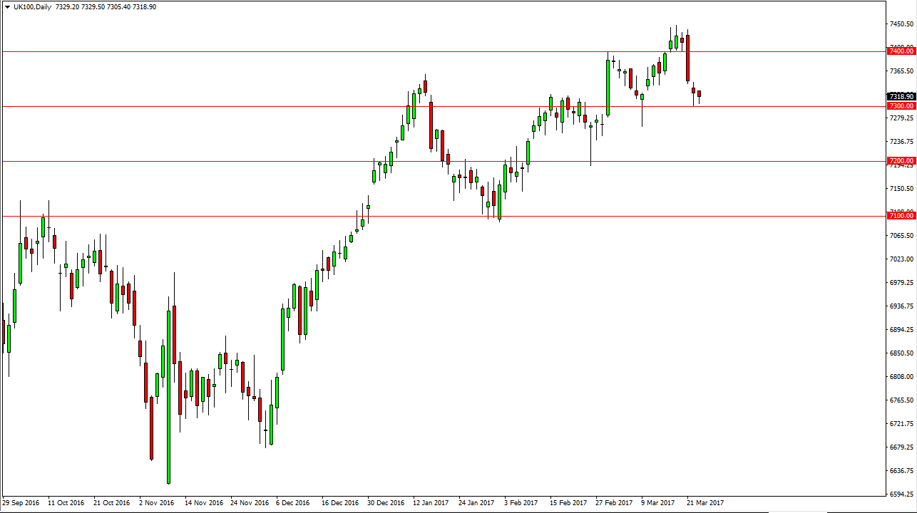 The FTSE 100 fell slightly during the day on Thursday, but found quite a bit of support at the 7300 level. Because of this, it’s likely that the buyers
