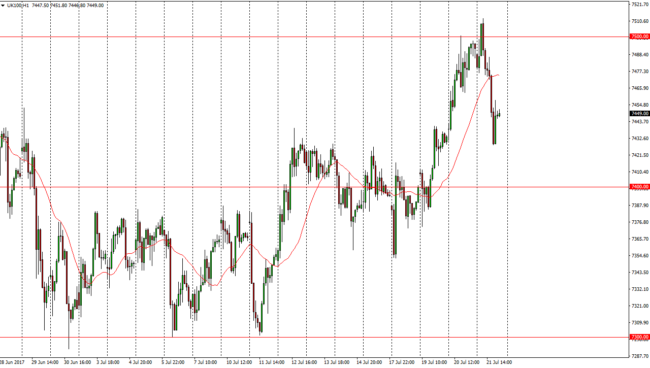 The FTSE 100 fell during the day after initially trying to break above the 7500 level on Friday. Because of this, looks like we are not quite ready to