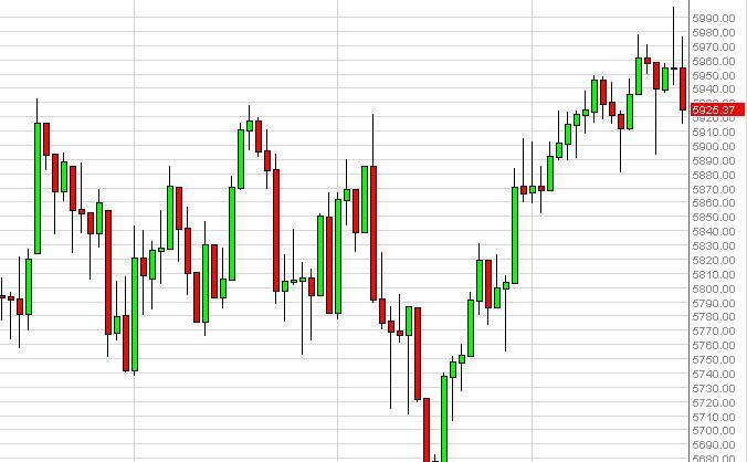 The FTSE 100 Index futures initially tried to rally during the Friday session, but fell short of the 5980 level in order to fall the way back down to 5925. Because of this, we formed a very bearish looking candle, and it should be noted that it was right after a shooting star for Thursday. With all this being said, we do need to see a clearance of the 5880 level to confirm a lower low at this point in time of the most recent candles and at that point we would be more than willing to sell. Obviously, based upon all of our analysis over the last several weeks if we can get above the 6000 level on a daily close, we would be more than willing to start buying.