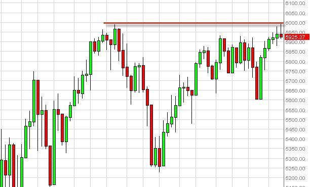 The FTSE 100 Index futures attempted to break above the 6000 level over the last five sessions, but failed as you can see by the shooting star on the