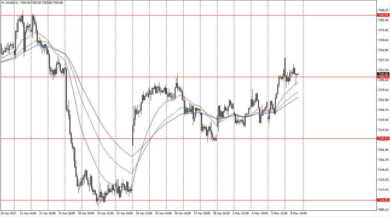 The FTSE 100 initially gapped higher after the results of the French election became public, but then turned around to fall significantly. The 24-hour exponential moving average has offered dynamic support, and with that being the case it makes sense that the uptrend may continue. More importantly, the 7300 level should offer support, as it has been resistive as of late. The market looks very likely to continue going higher due to this support, so I am bullish and I believe that we will go looking towards the 7330 handle above, to fill the gap. That should be the first attempt, but then eventually I think we will eventually go to the 7400 level above. I like the FTSE 100, as it has been very bullish for quite some time. It might be a volatile and choppy, but longer-term suggests to me that if you are patient you are more than likely going to continue to see profits.