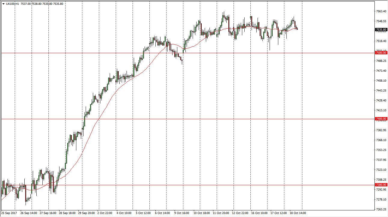 The FTSE 100 rallied slightly during the day on Wednesday, but then pulled back a bit from the 7550 level. I believe that the market continues to consolidate between the 7500-level underneath, and the 7550 level above. Given enough time, the market should continue to go above the 7550 level, and reach towards the 7600 level. The market has been going sideways for several days, as the 24-hour exponential moving average continues to be flat. The market has recently been bullish anyway, so once it broke above the 7500 level, the market may need to consolidate some of the gains, and digest the bullish momentum. Given enough time though, this should lead to continuation, as is typically the way that these moves happen.