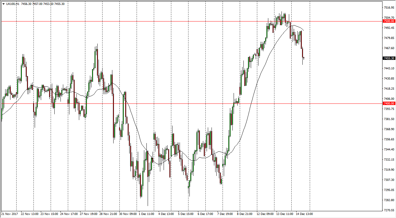 The FTSE 100 has gone sideways during most of the trading session on Thursday, before dropping down towards the 7450 handle. That’s an area that should attract some attention, extending all the way down to the 7400 level.