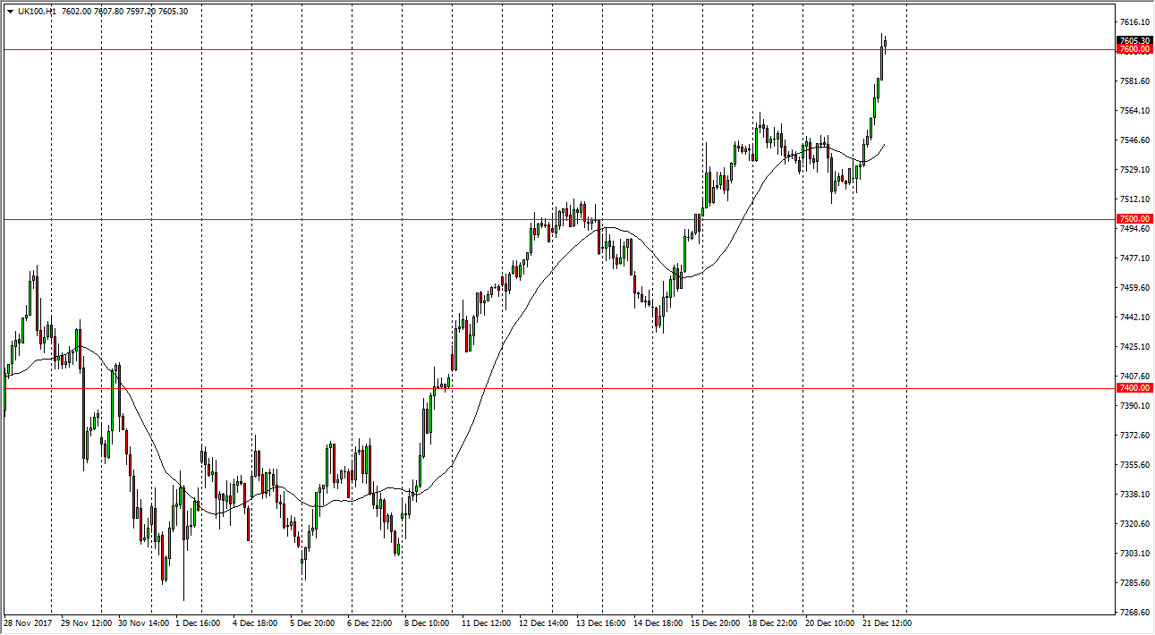 The FTSE has exploded to the upside during the trading session on Thursday in thin volume. What’s more important though, we are reaching towards the top of the overall consolidation area that we have seen recently.