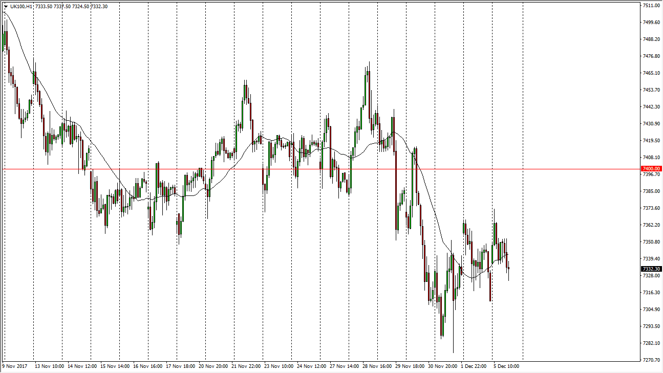 At this point, I believe that the FTSE 100 is struggling due to the negotiations between the United Kingdom and the European Union stalling. However, they will eventually come to some type of agreement, because quite frankly they need to and eventually must. Because of this, I believe that the markets are trying to figure out whether the British will have the ability to export easily to the continent. In the end, they will so that should be a boon for the FTSE 100. In the meantime, the volatility should continue to be an issue, and I believe that the 7400 level above will offer resistance. It looks as if we are trying to form either a bearish flag, or perhaps an uptrend in channel. It’s a little bit early to tell which direction, and I believe that this will be news driven. Therefore, positions in the FTSE 100 should be rather small currently. However, we will eventually get some type of clarity, and then it should be easy to follow.